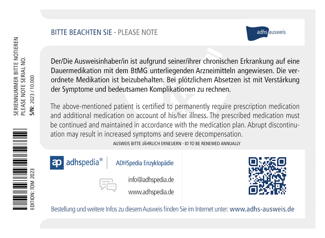 Erfüllt alle Kriterien gemäß Beschluss des Verwaltungsgerichts Koblenz („Elvanse-Urteil“, 2022)