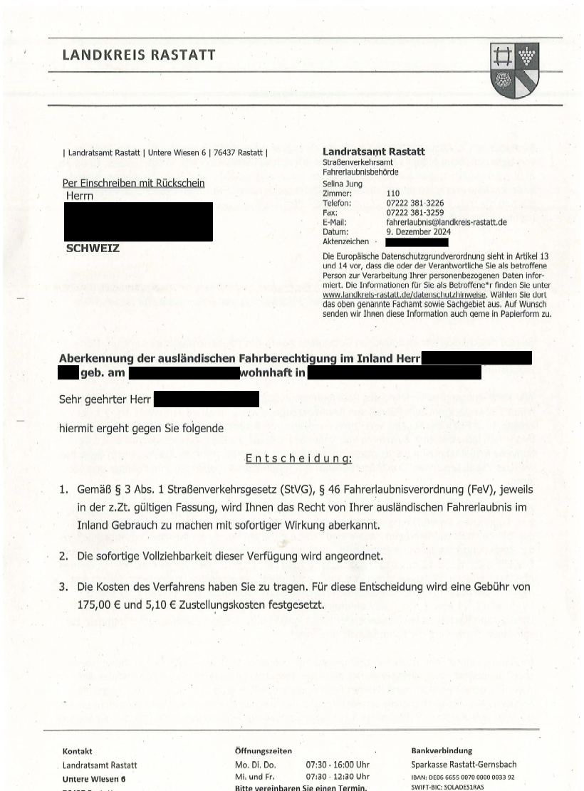 Noch drastischer reagierte nun jedoch die Fahrerlaubnisbehörde: sie erkannte im Dezember 2024 zunächst das Recht ab, mit der ausländischen Fahrerlaubnis in Deutschland zu fahren – mit der Begründung, der Wirkstoff falle unter die Kategorie „harte Drogen“ und schließe die Fahreignung grundsätzlich aus. Nach Widerspruch und Vorlage weiterer ärztlicher Unterlagen folgte eine Wende: Die Aberkennung wurde zunächst aufgehoben. Stattdessen wurde nun jedoch eine Fahreignungsprüfung durch ein ärztliches Gutachten angeordnet. Dabei soll geklärt werden, ob die Medikation die Fahrtauglichkeit tatsächlich einschränkt oder ob Auflagen erforderlich sind.